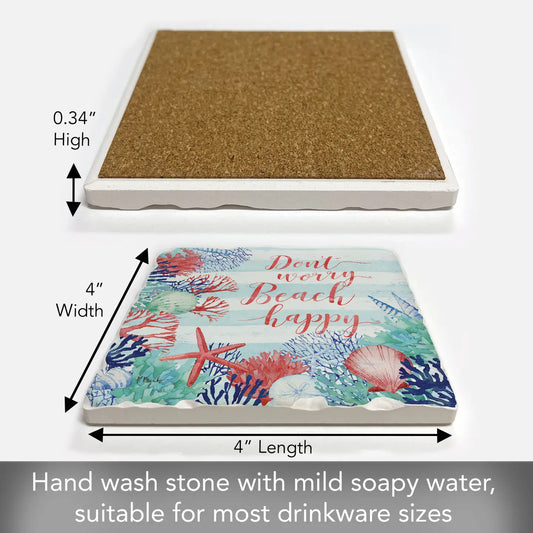 "Beach Happy" Absorbent Tumbled Tile Coaster