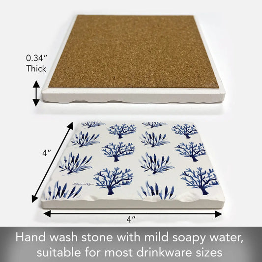 "Coastal Coral" Absorbent Tumbled Tile Coaster