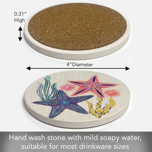 "Colorful Starfish" Round Absorbent Stone Coaster